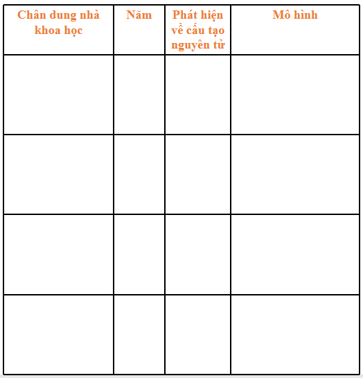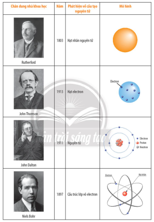 - Bảng lịch sử khám phá và nghiên cứu cấu tạo nguyên tử.