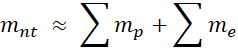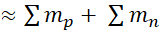 + mp= mn = 1 amu, me = 0,00055 amu